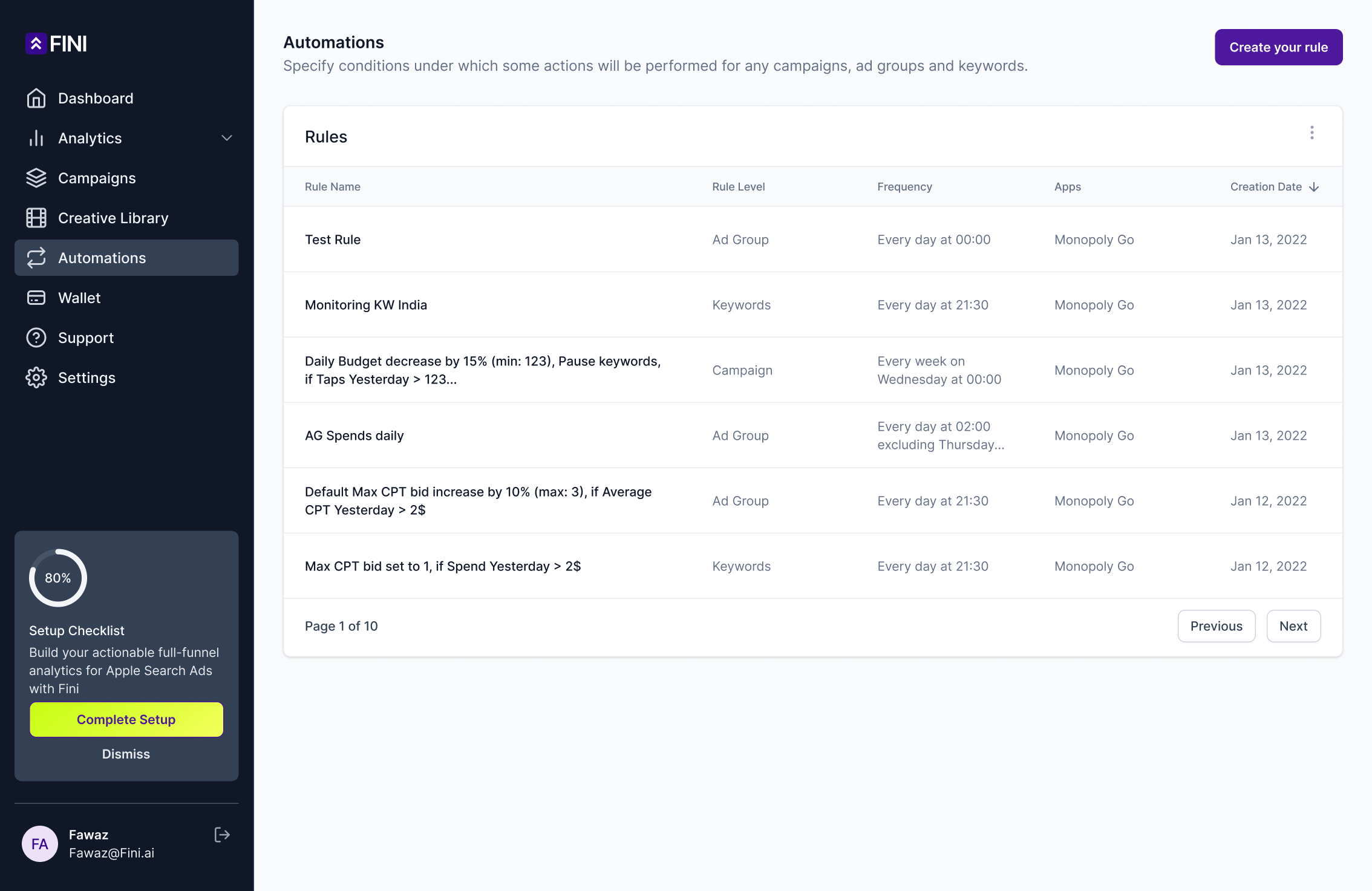 We Increased ROI by 20% and our traffic volume by 15% We Increased ROI by 20% and our traffic volume by 15%. Overall, Fini is a powerful tool for iOS ads campaigns. It is an effective platform to optimize campaigns, manage bids and find new keywords. We highly recommend Fini to any one looking to optimise their iOS campaigns.